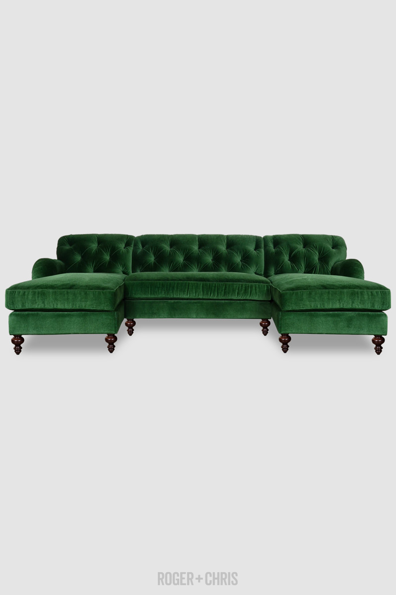 Keefer emerald green velvet chaise.