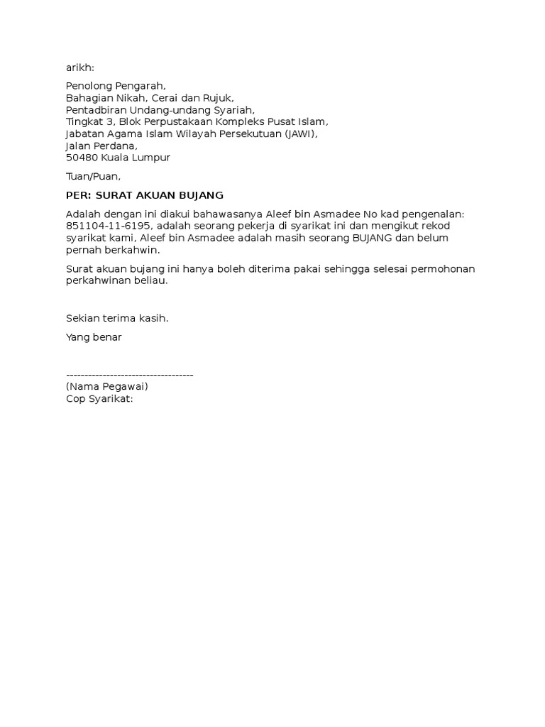 Contoh Surat Akuan Bujang Tiada Majikan from lookaside.fbsbx.com We did not find results for: Check spelling or type a new query. Maybe you would like to learn more about one of these?